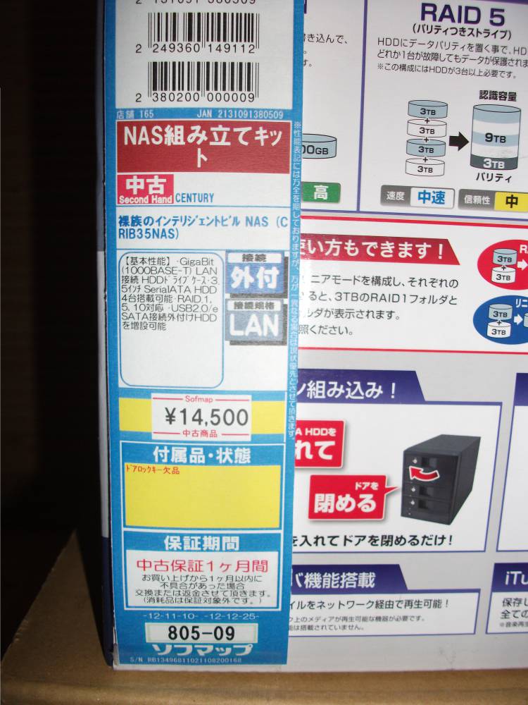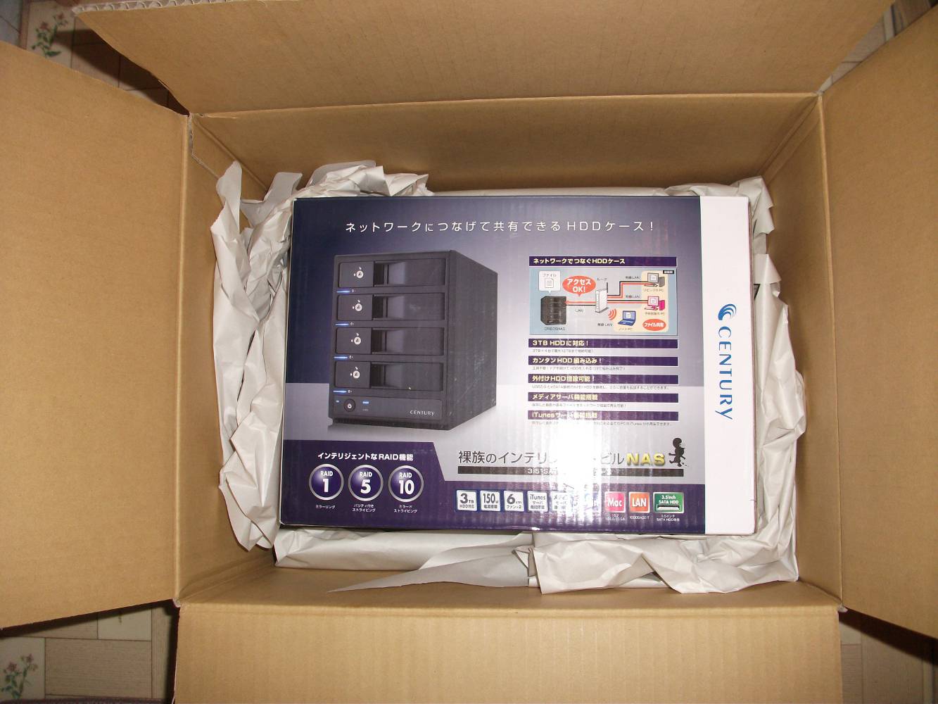 今回購入するものは、最大3TBのHDDが使え、組み込み4階層あるので、計12TBまで搭載可能となります。