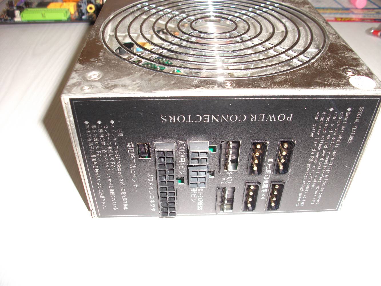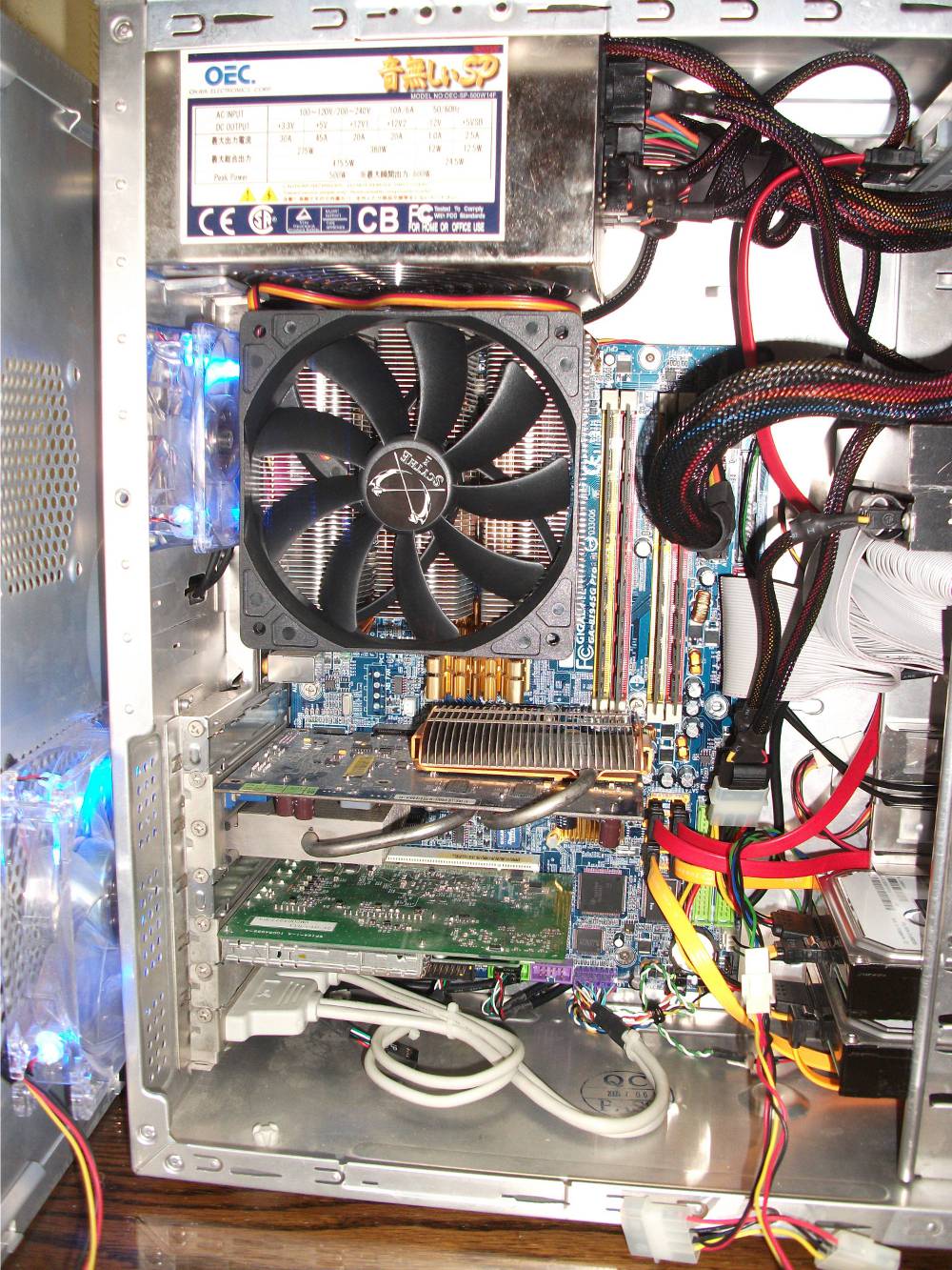 騒音の原因になっていたツインファンは取り除きました。 振動による騒音防止のシリコンは必需品。 電源は脱着式でスッキリと…。