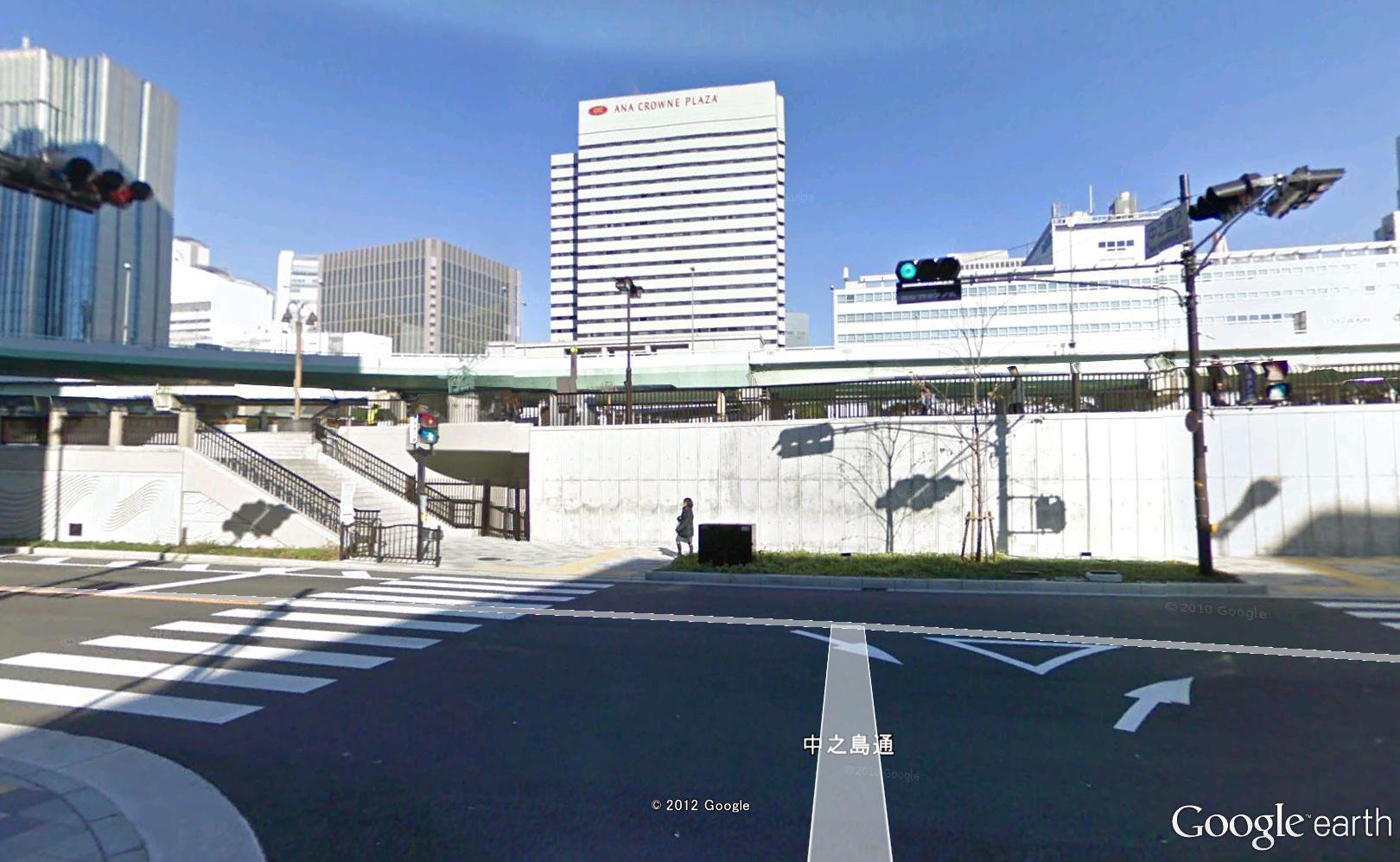 右は公園、下はちょっとした繁華街、上は京橋と天満橋をつなぐ京阪電鉄と府道があるくらいです。