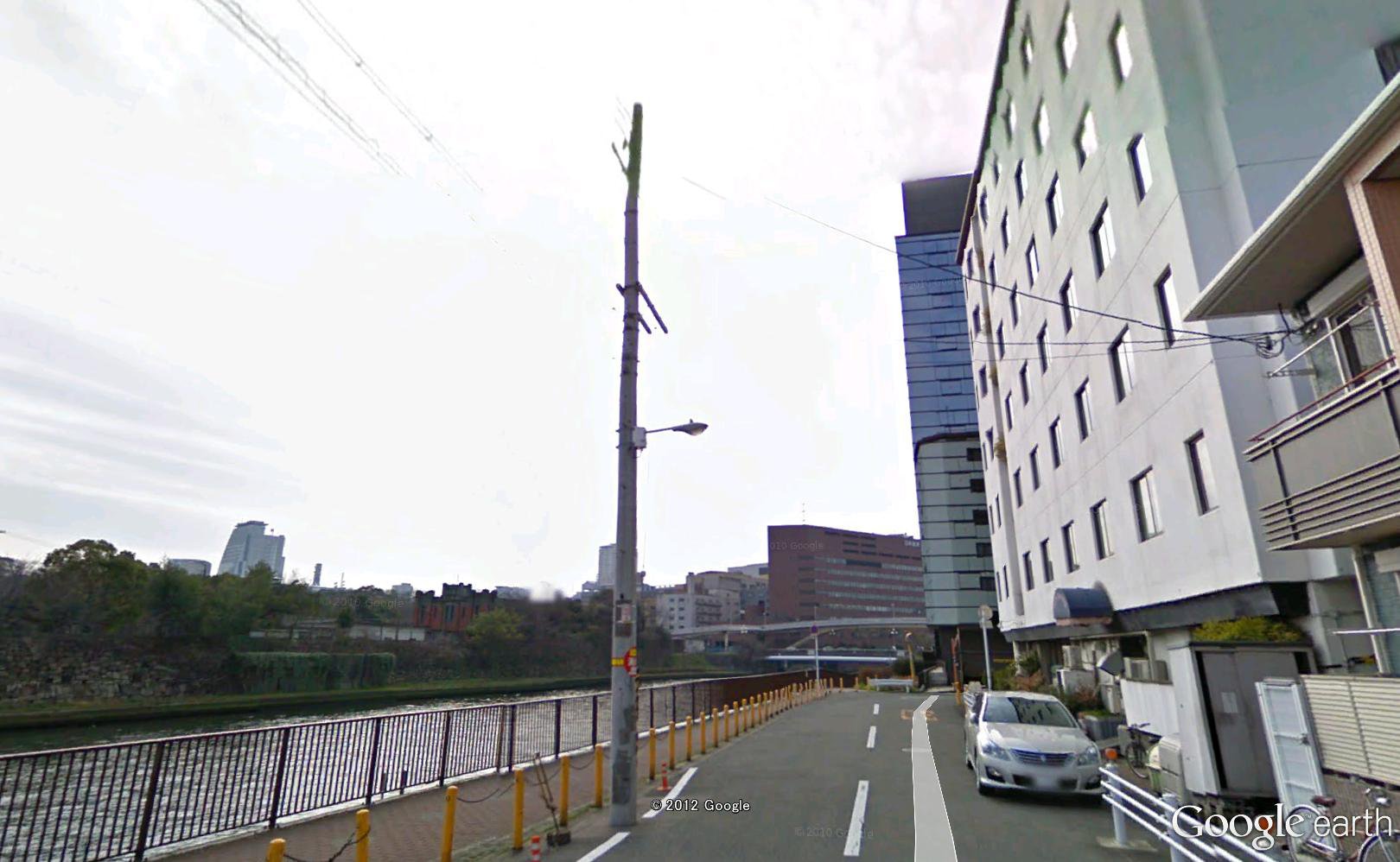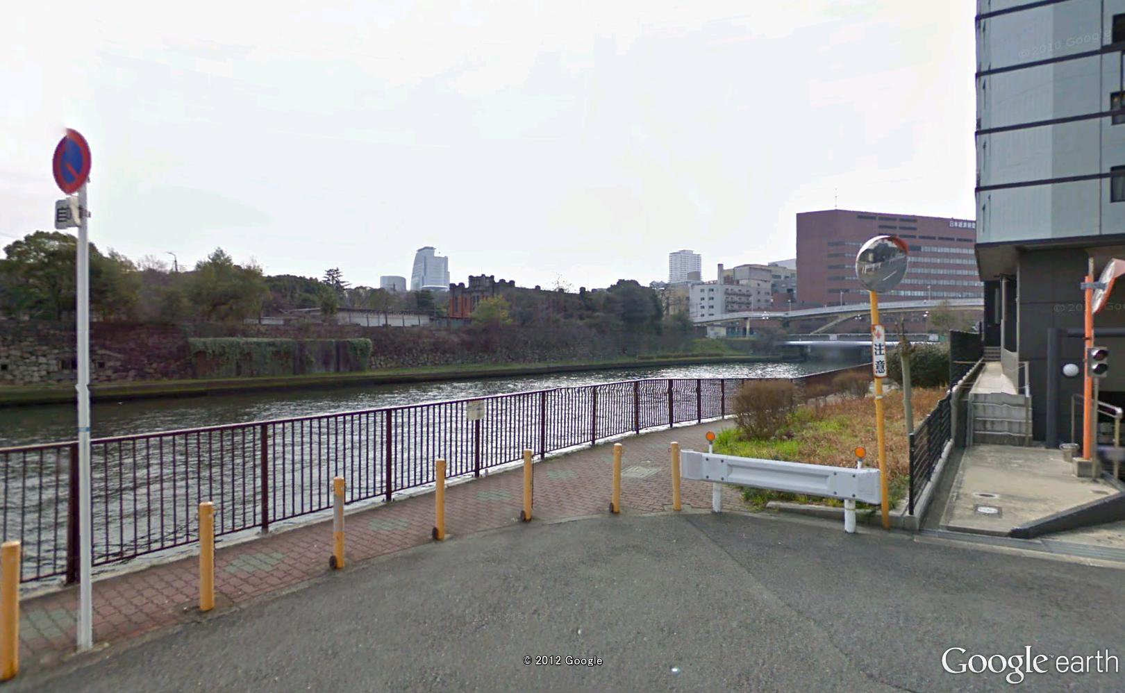 大阪城がすぐ目の前だから前の川はお堀だと勘違いをしていましたが、あれは一般の川と考えるとココしかないのです。