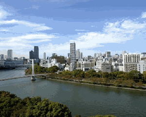 中央遥かにホテルが見えます。左がドラマ冒頭の大阪市中央公会堂