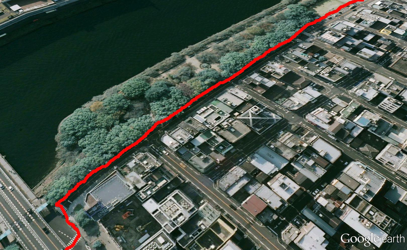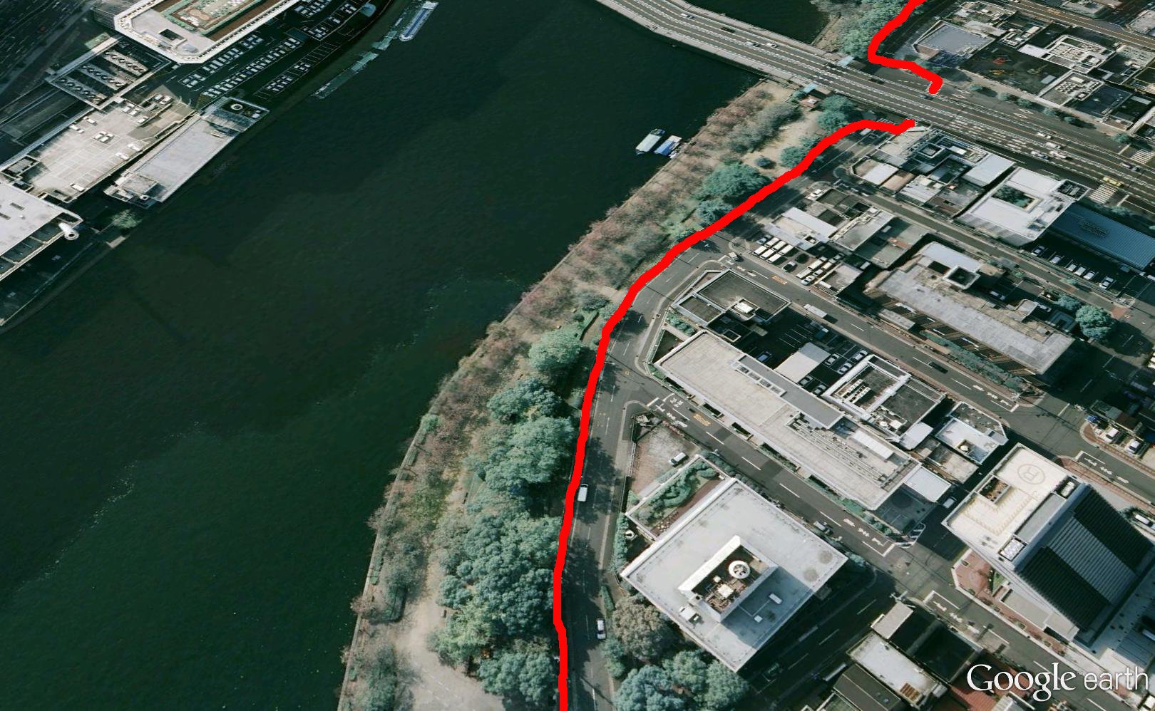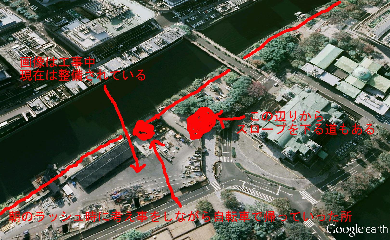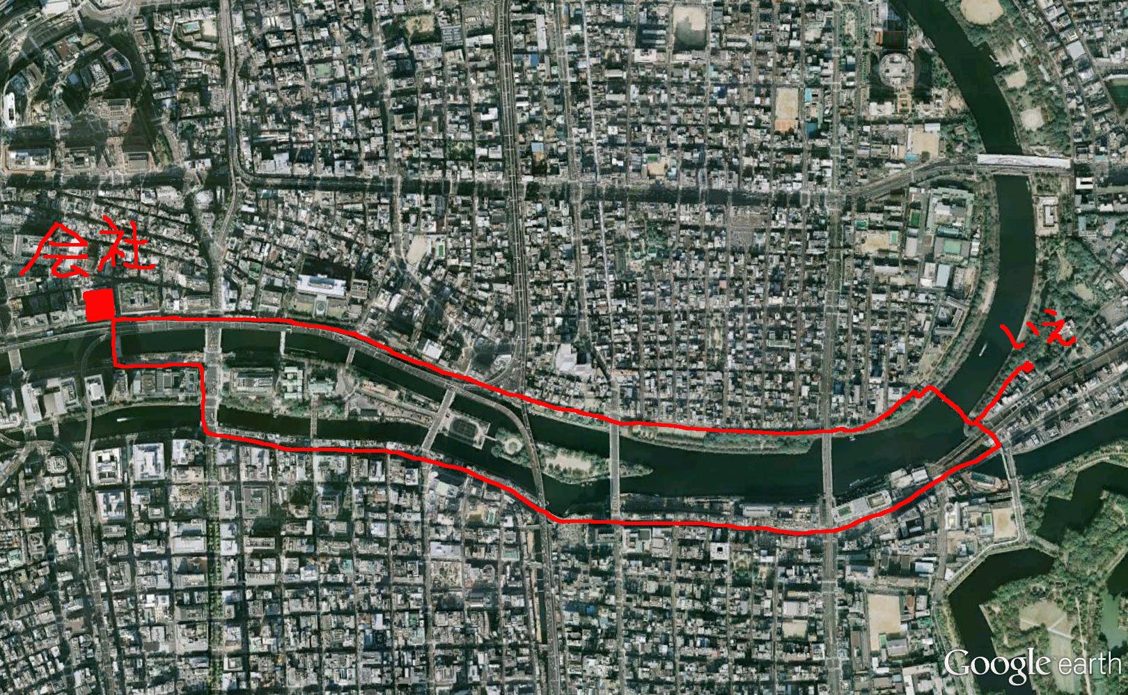 また、橋を渡らず天満橋方面から行くとなると、家をでて直ぐに人道トンネルを自転車を降りて行かなければならないので、実際の生活では若干遠回りの道順になるはずなのです。