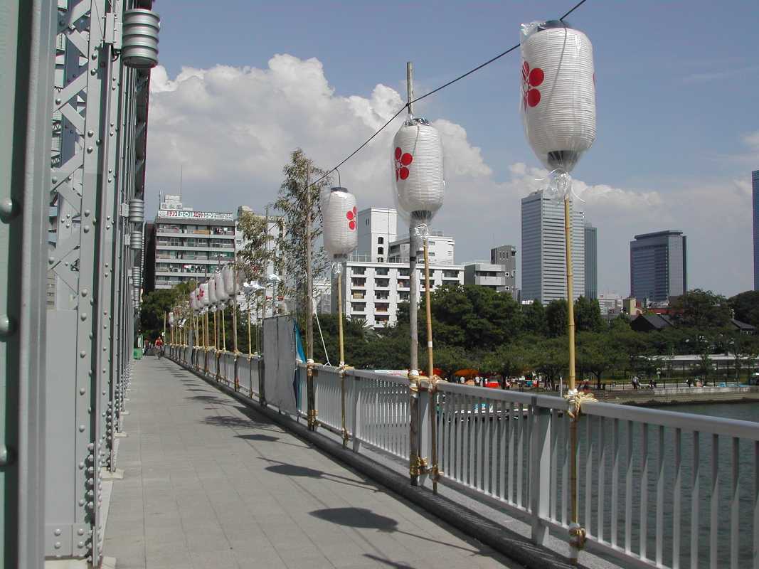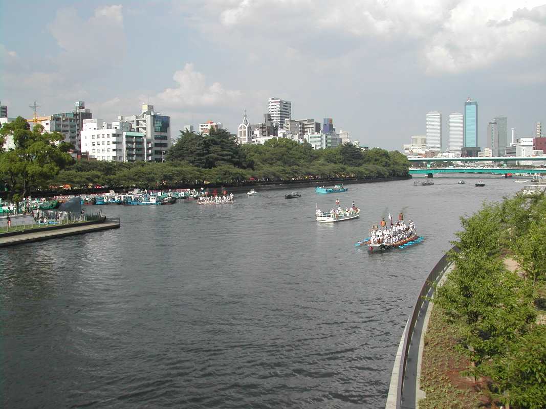 天満橋付近など適当に自転車を走らせ大川の南側を松屋町筋まで来ると橋の上から船が見れました!
