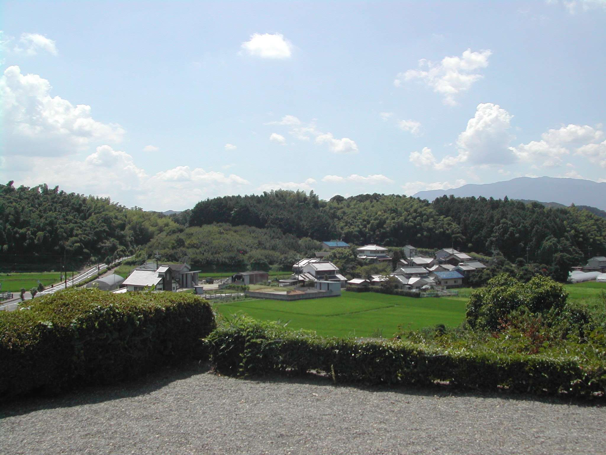 天皇陵から望む高松塚古墳…と思ったら間違いで実際は画像の左にある。かろうじて中尾山古墳が写っている。