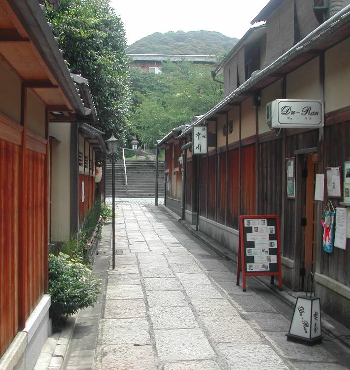 通りを真っ直ぐ行くとはじめに通った通りに出てその通りをはさんだ向こう側が舞妓さんとかを見かける通り。