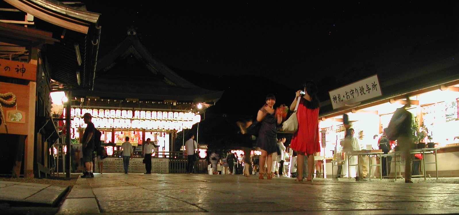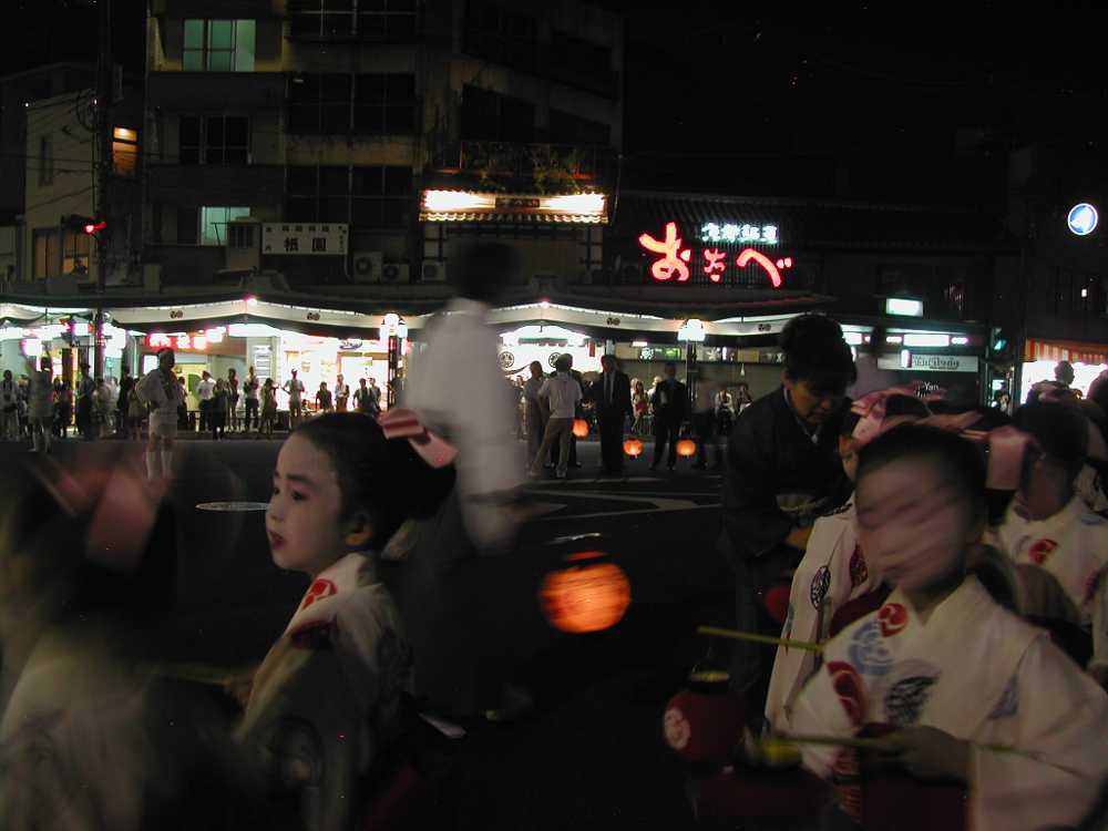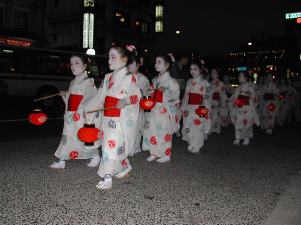 「わっ!」と退くと隅っこをこわばった顔の舞妓さんが歩いて行くとそれを追う様な感じでみんなが一斉にフラッシュを使って撮影し、仕事に行く途中みたいなもんでしょ?ちょっと可愛そうに思った。