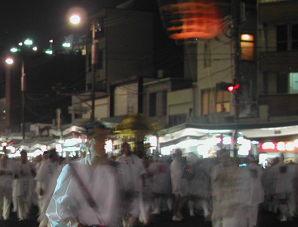 「神輿の分はこれで終りなんだからまたこれに着いて八坂神社の夜景でも撮影しよう」とついて行ったら、入れ替わるように神輿が出て行った!