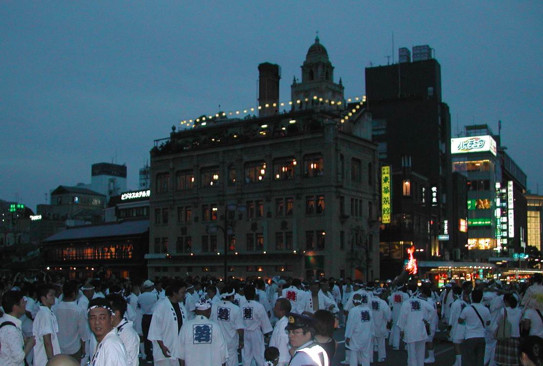 午後8時から神輿洗式だけどまだ2時間半ほどあって、しばらく橋の上に居たり周りをウロウロしたり、もう疲れたから帰ろうかと駅に降りたり、そんなで時間をつぶし午後7時15分にモブログ更新を行う。