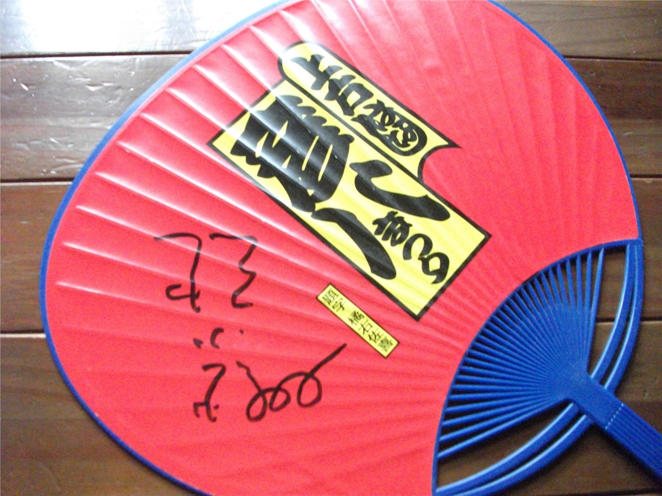当時の有名どころの落語家が沢山いていろんなグッズを販売していましたが特に興味はなく、来た証しにと団扇を1柄買って桂小枝さんからサインをいただきました。