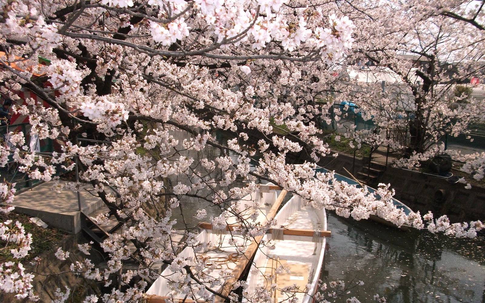 前日の雨で散った花びらによって一面ピンクの絨毯の様にもなり、風でヒラヒラ舞う桜は一日観ていても飽きない。