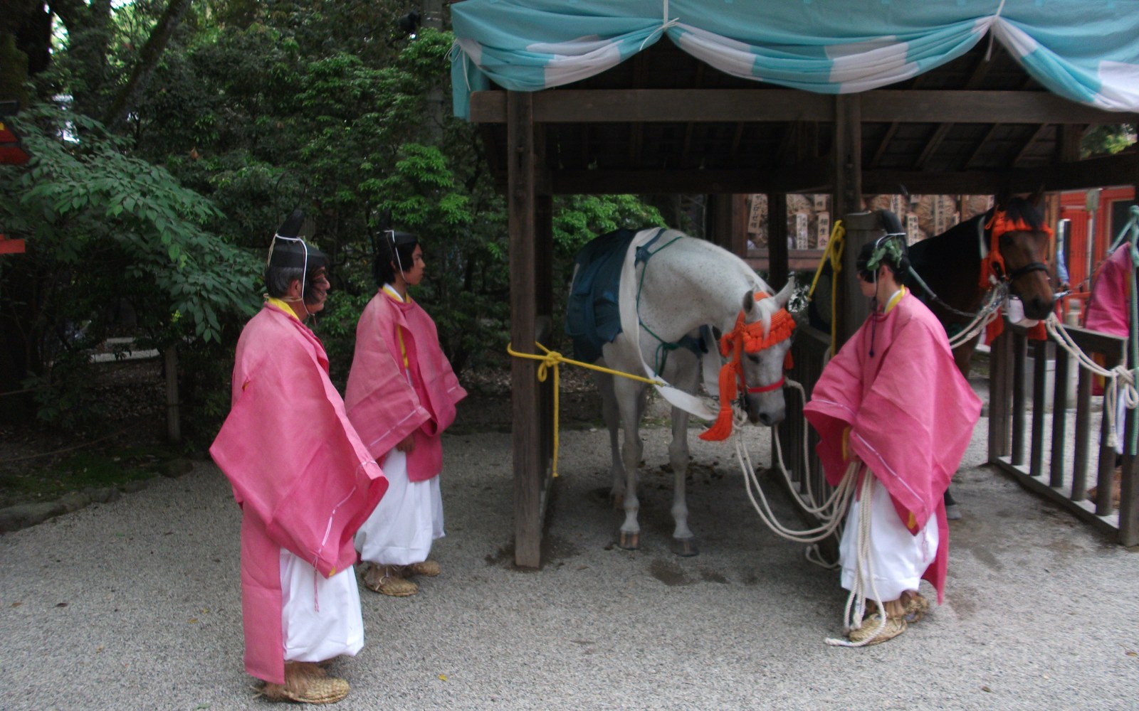 見物場所にも恵まれませんでしたが、下鴨神社だけに絞ったおかげで、偶然に「走馬の儀」というのも見れましたし神馬に触れたりもしました。