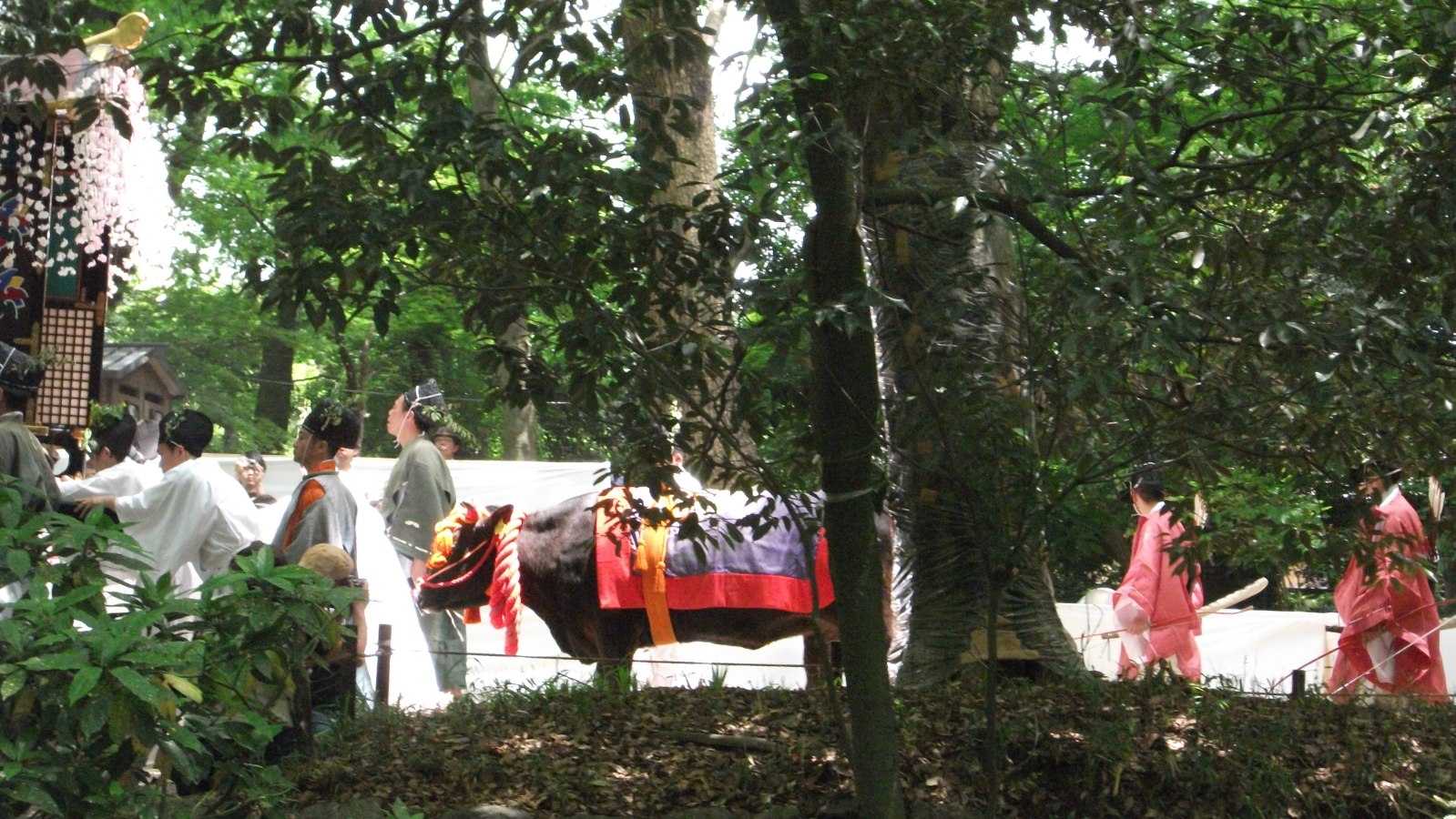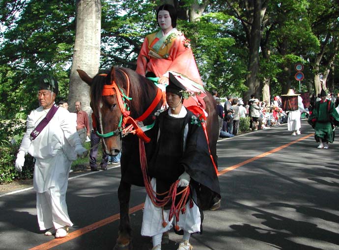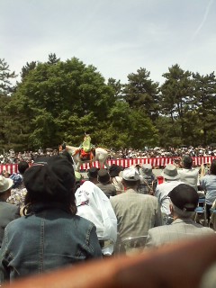 全ての行列を観終わって帰るころ、たまたま観覧していたすぐ脇が「走馬(そうめ)の儀」が行われる場所であったので、30分以上その場に立って待っていたと思います。