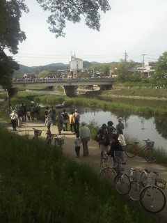 ただひたすら「河原町通」を歩き続け、「荒神口」から鴨川にかかる橋を見つけたので府道を左に折れ「荒神橋」を渡って右に折れ鴨川沿いの歩道を歩き続けました。