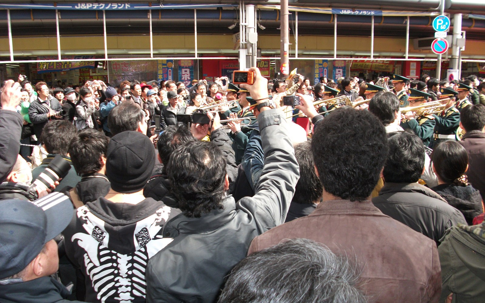 着いたときには人がいっぱいだけど、いずれ移動するJ&P側の良い場所に着いたのですがバッグ内をゴソゴソしている時に移動がはじまり、それらについていけず結局人ごみの後方から観る事になりました。