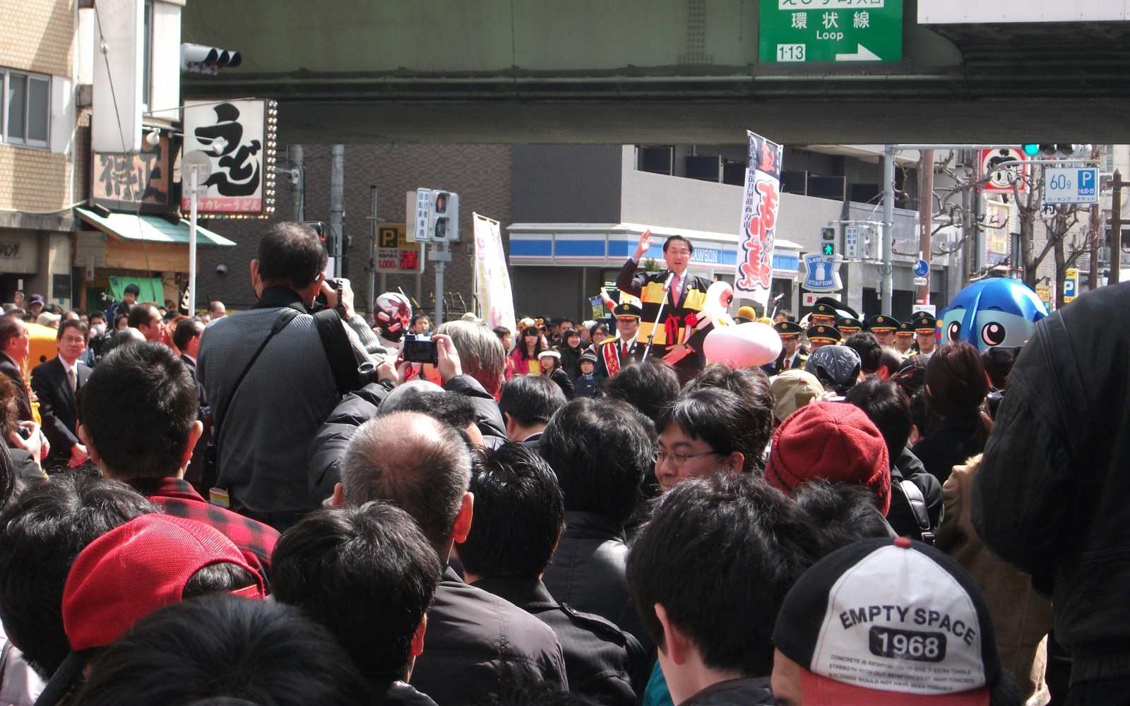 到着は12時半。既に「ホコ天」になっている堺筋は人で満杯。