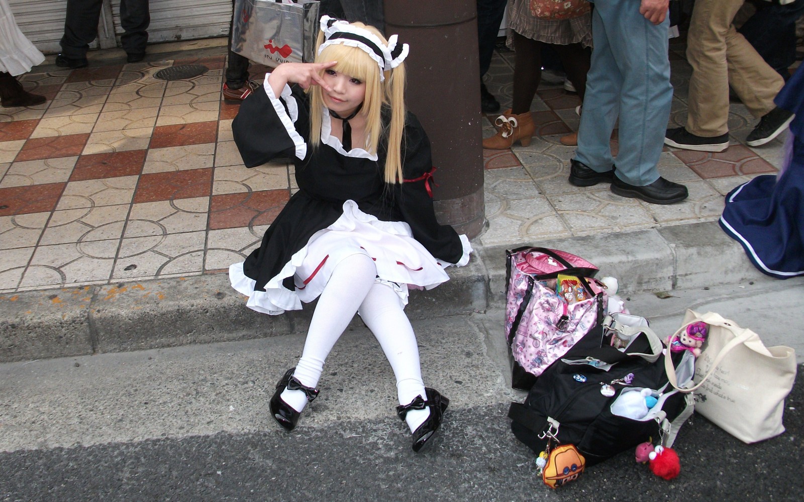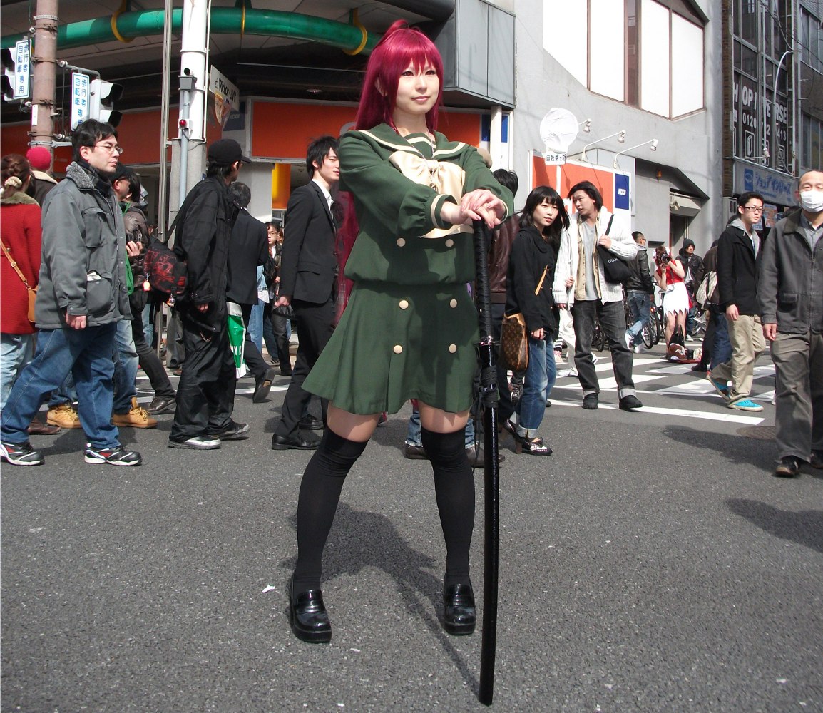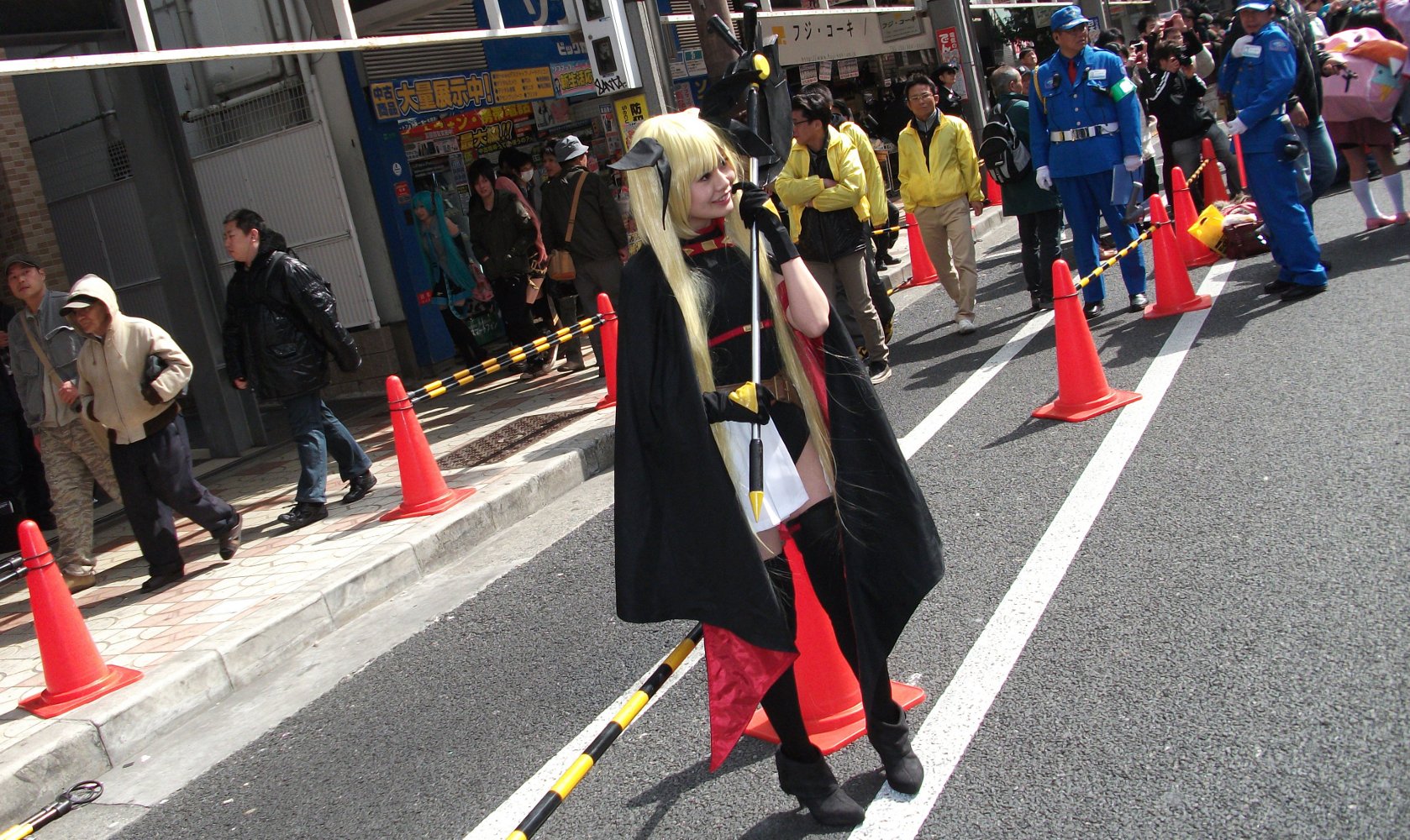 前回は「涼宮ハルヒ」が多かった様に思いましたが、今年は「初音ミク」が目につきます。 この後方にもぼんやり初音ミクがいます。…あ、違うかも? はじめに撮った二人かも? とにかく本当にたくさん居ましたよ。