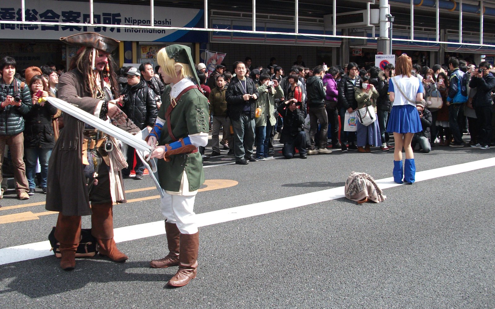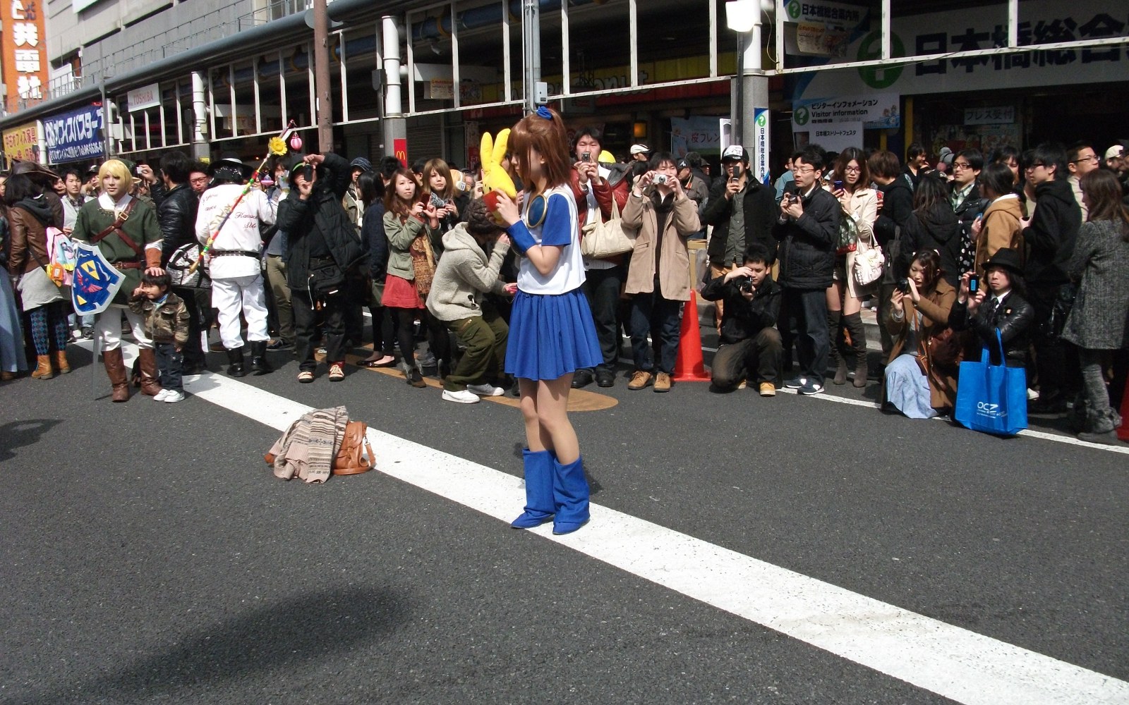 コスプレイヤーの写真など撮っている人もいましたがそれらには目もくれず、先に総合案内所でガイドブックとチラシをもらい、オープニングセレモニーが行われるJ&P付近までいちもくさんです。