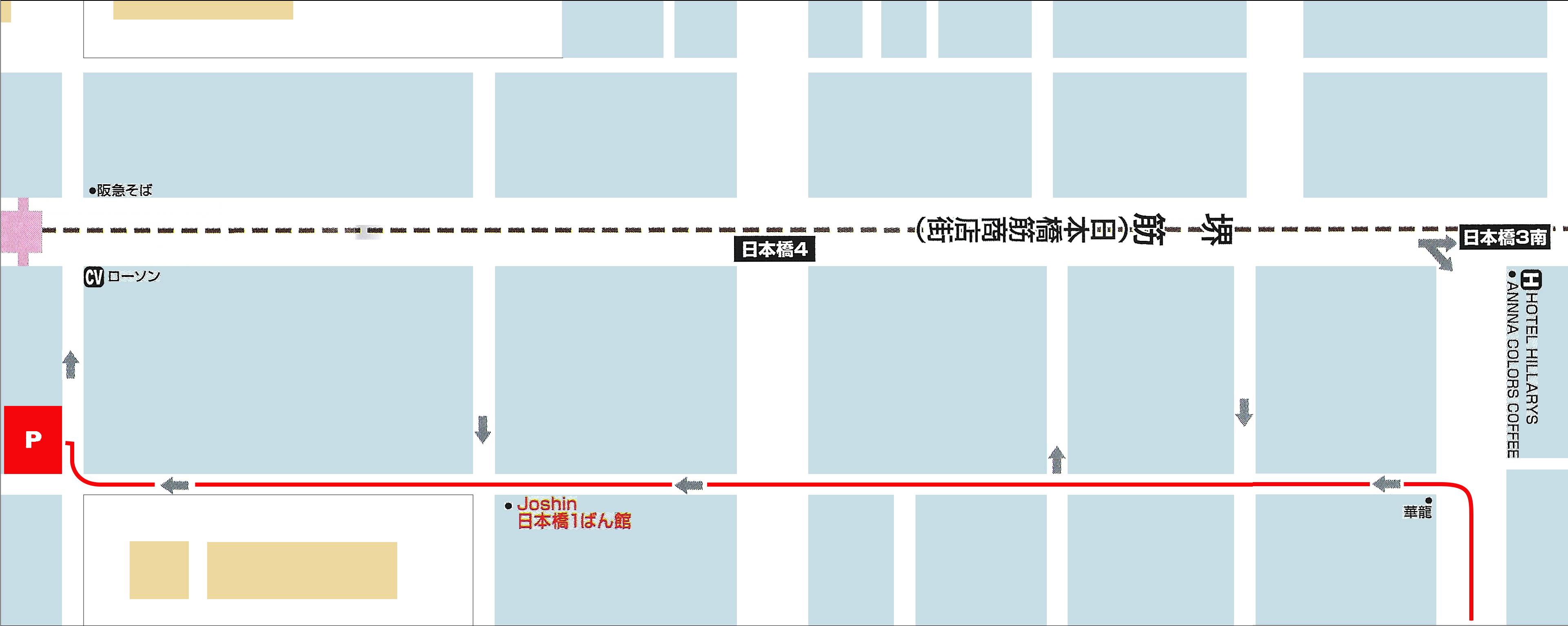 松屋町筋からでんでんタウンのある堺筋に向かい、交通規制のため全ての車が右折してゆく中、こちらは一本手前の道を左に折れジョーシン1ばん館越えたところのバイク駐輪場に直行です。