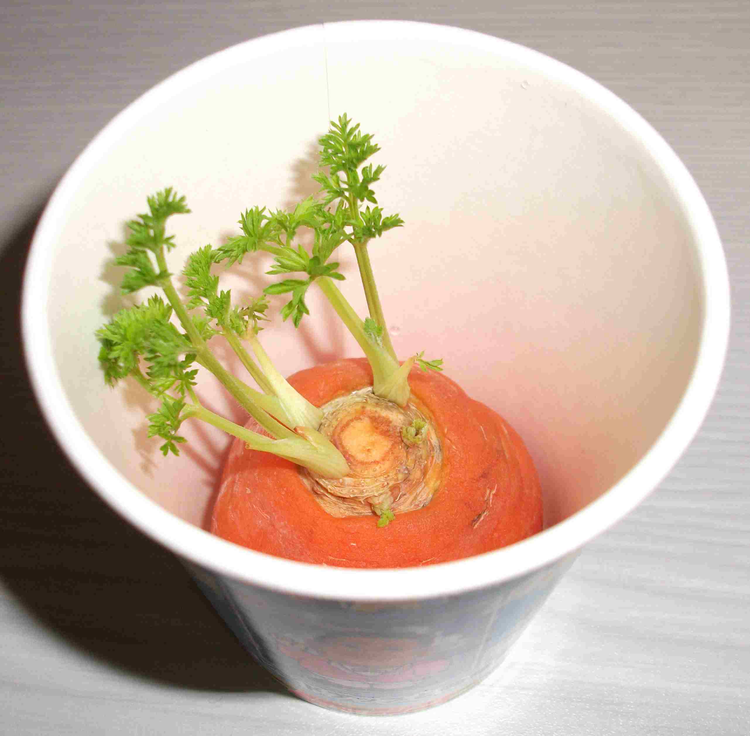 数日前に買ったニンジンがあるのを昨日まで忘れていて「あ!そうそう」と思い出した様に見ると葉っぱがはえていました!