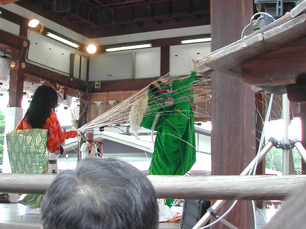 またしばらく待っていると舞台の上で何やら用意を始めたので正面に廻ってみた。
