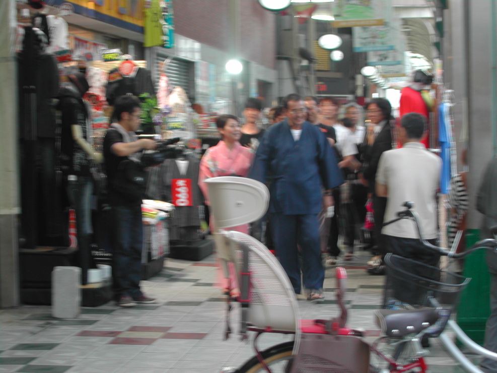 しばらく着いていくと通天閣に入って行ったので、またブラブラと動物園から天王寺側へ渡ったりして、また通天閣側を通って帰ってきたら、今度はTVのスタッフ達が通天閣の前で二人が出てくるの待っているようだったのでまたそこで待ち伏せ…といても遠くからみかけたのでソノ遠い場所からの撮影となった。