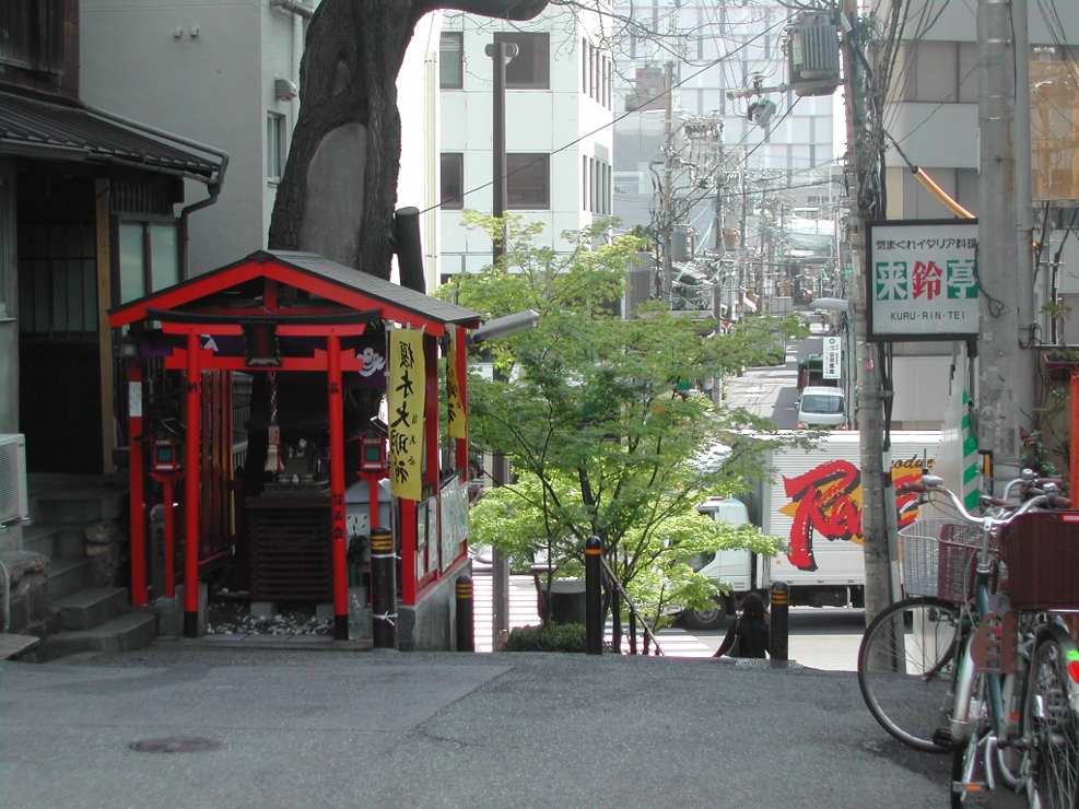 三枚目にあるお社をみるとこの方向であっている?真っ直ぐの方向に空堀商店街が見える。