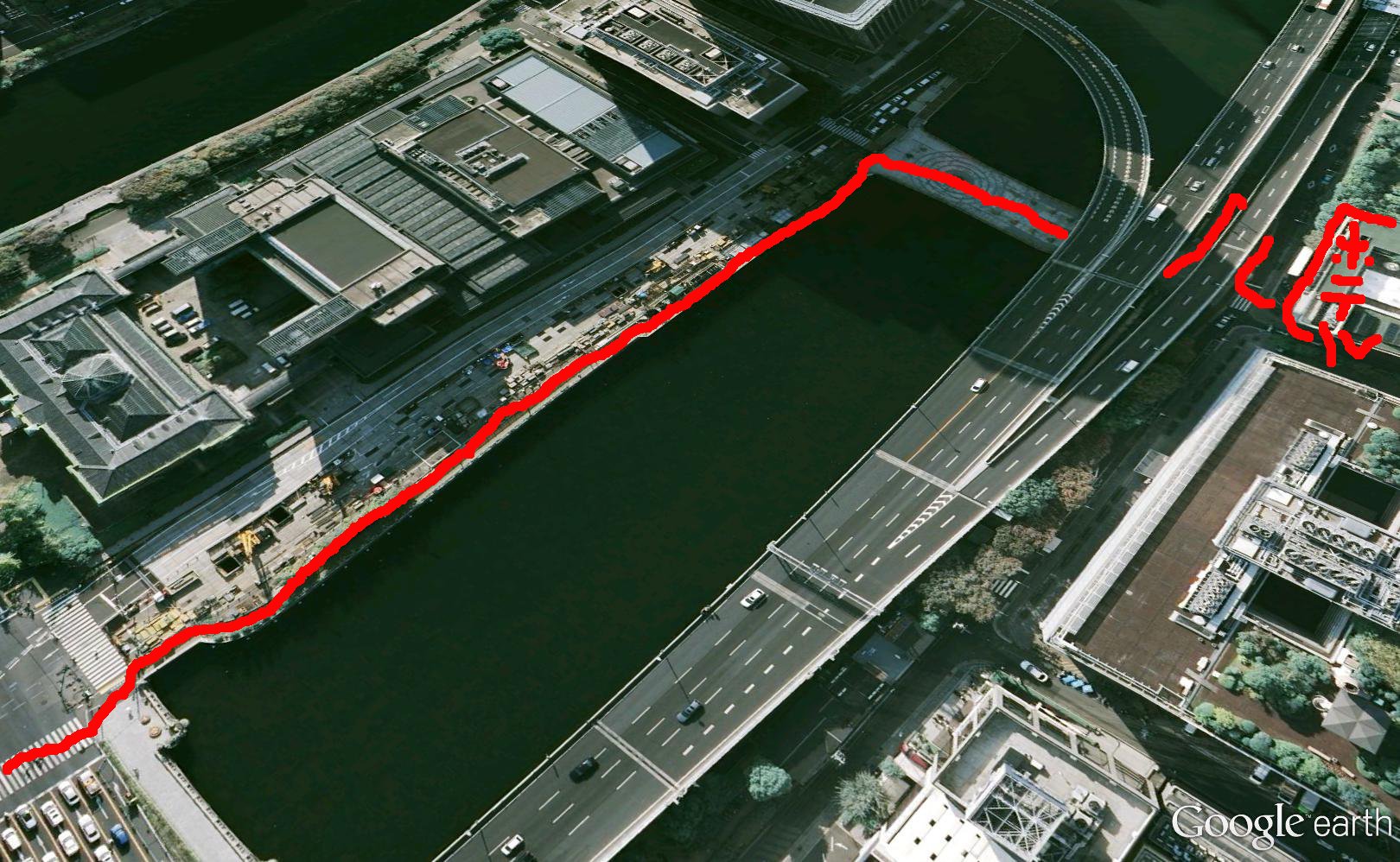大阪城がすぐ目の前だから前の川はお堀だと勘違いをしていましたが、あれは一般の川と考えるとココしかないのです。