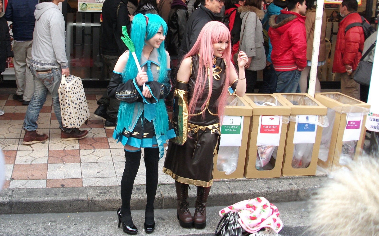 人びとの様子を撮ったつもりだったが、拡大してみると手前の初音ミクはこっちを見ている感じです。